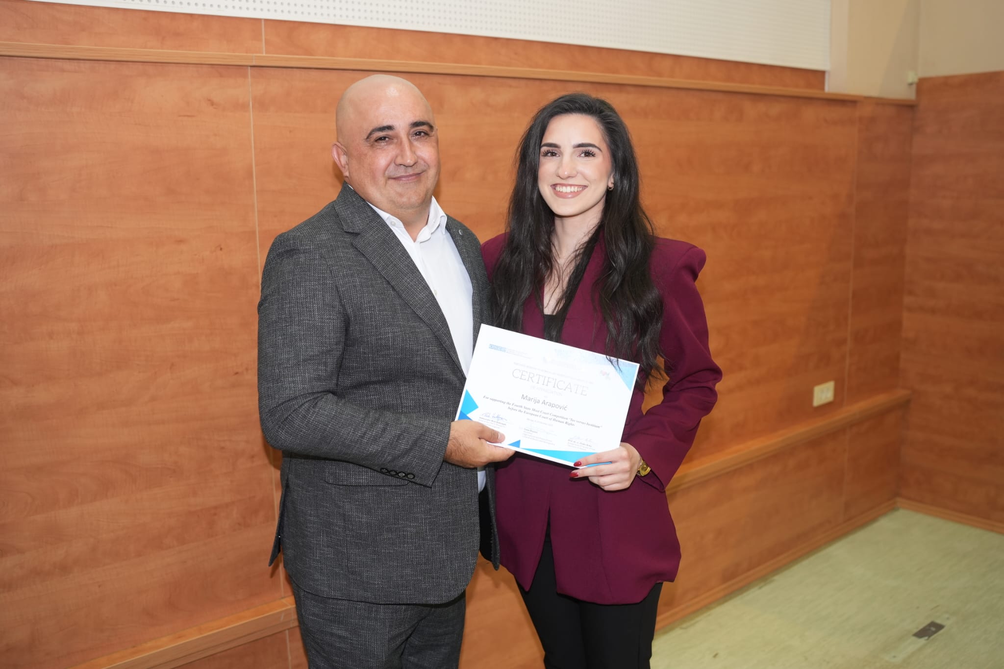 Tim Pravnog fakulteta Sveučilišta u Mostaru činile su Marija Glamuzina, Marija Buntić, Magdalena Primorac i Nataša Mrnjavac uz podršku akademske trenerice asistentice Maje Mijatović. Nakon uzbudljivih rundi u usmenoj fazi, u finalu natjecanja pobijedio je tim Pravnog fakulteta u Zenici, dok je naš tim osvojio drugo mjesto.